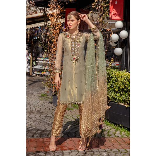 Pure Crinkle Chiffon Shirt with Banarsi Organza Trouser