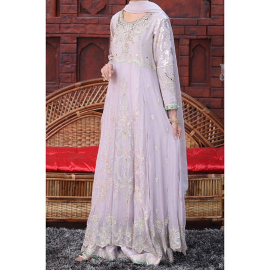 Light lilac chiffon voluminous frock style dress