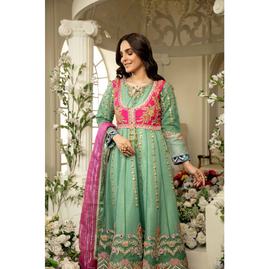 Green and orange double layer upper chiffon and lower viscose pashwass